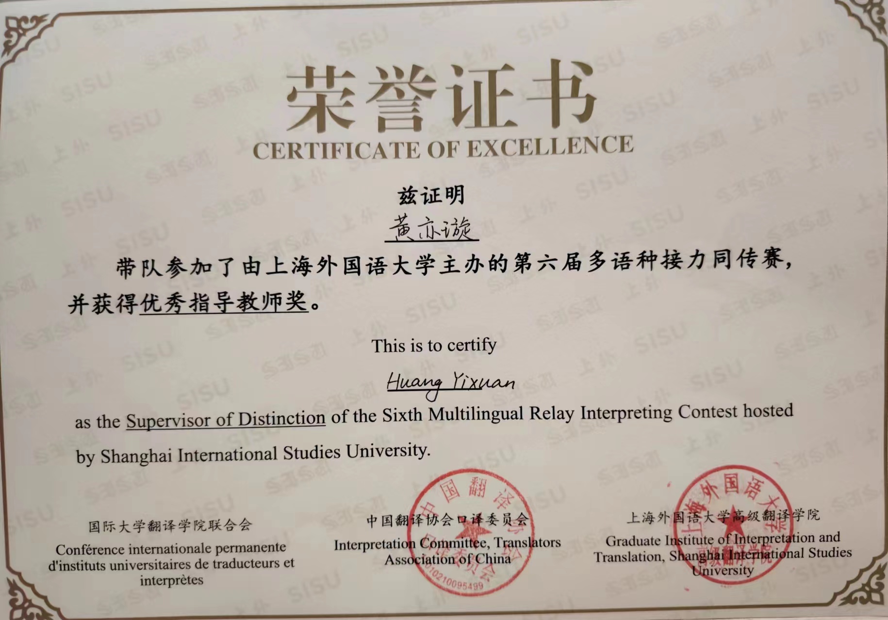 2024年6月1日,第六届多语种接力同传赛决赛在上海外国语大学虹口校区落下帷幕。我院西班牙语系2023级本科生岳雨楠荣获二等奖,西班牙语系教师黄亦璇荣获优秀指导教师奖。