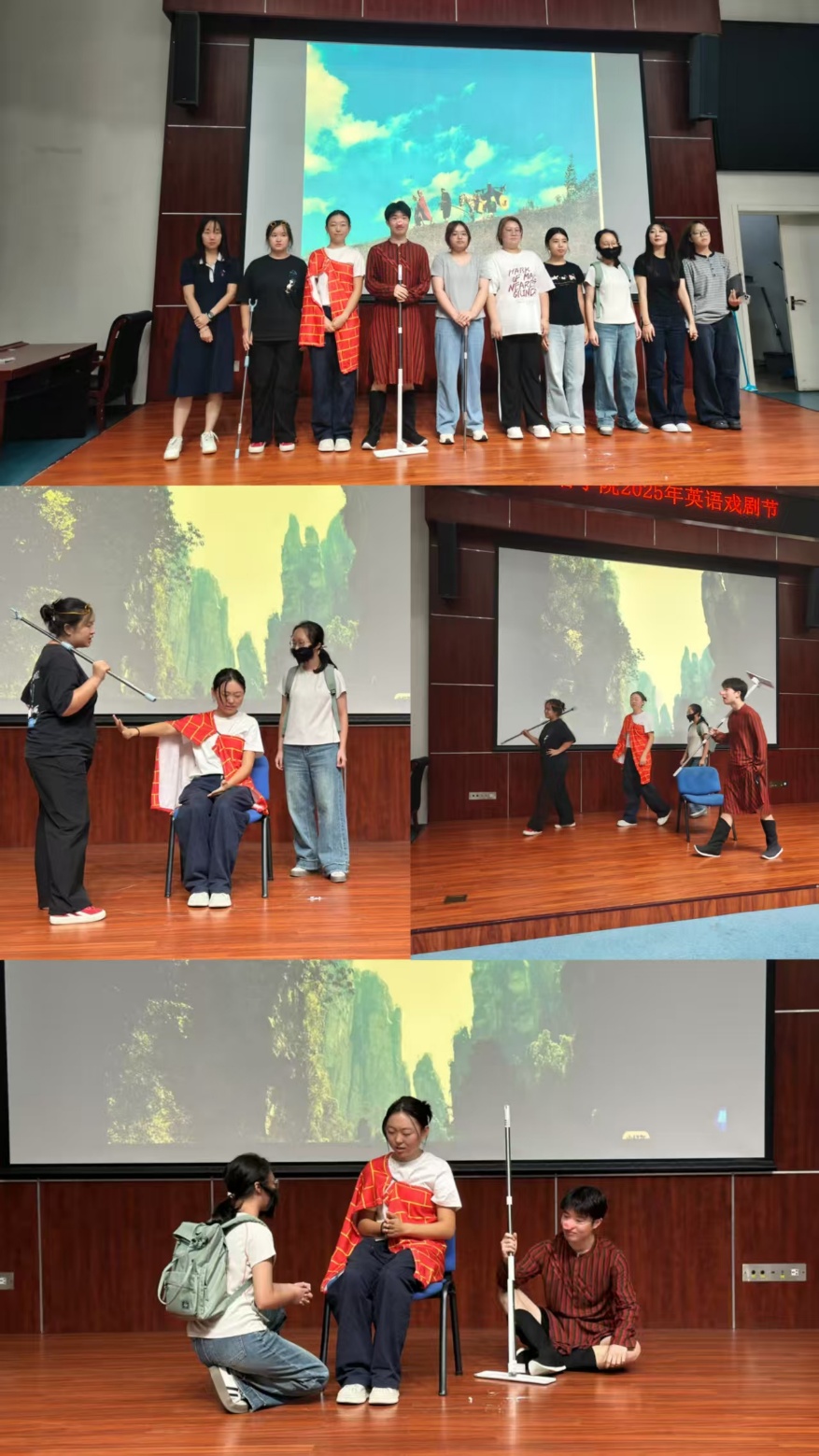 此次戏剧展演作为英语系小学期的传统延续,不仅展示了同学们扎实的专业功底和实践成果,更体现了英语系学子搭建文化桥梁、肩负文化传承与交流的使命与担当。戏剧节由2023级同学协调组织,张煜熙同学担任主持人,两个年级六个剧组从中英文原著与影视作品中选取精彩片段,精心改编,认真排练,呈现了一场异彩纷呈的表演。从剧本到舞台,从语言到动作,从道具到服装,从背景到配乐,每一位同学都将热情与创造倾心投入到这场精心组织的盛宴,整场演出圆满成功,收获了全场观众不断的掌声和诚挚的认可。