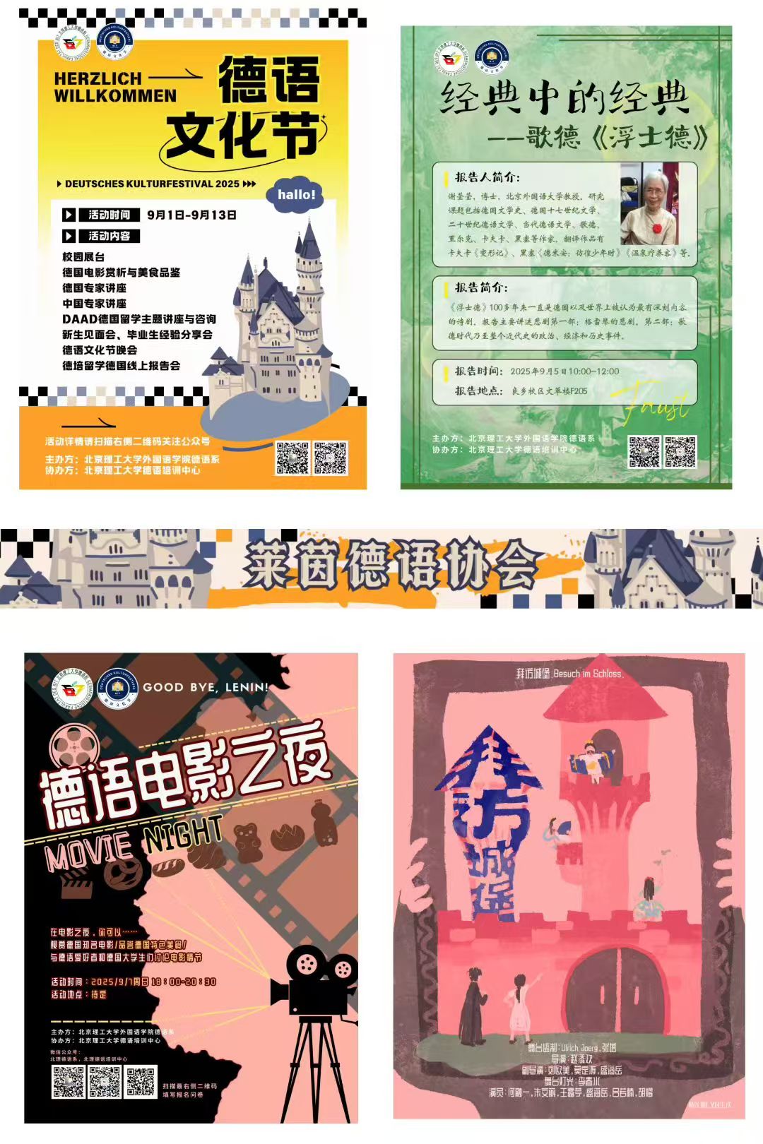 回顾此次德语文化节,9月5日举办的专家学术讲座围绕“经典中的经典——歌德《浮士德》”进行,北外谢莹莹教授以一场精彩的报告感染并打动了在场聆听的每一个人,她本人对生命的不屈抗争连同她在报告中所强调的“生命不息,探索不止”的浮士德精神都激励着同学们努力追求自己向上的“动态人生”。9月7日举办了“德语电影之夜”活动,中、德大学生与德语系老师们齐聚一堂,通过观看电影《再见,列宁》共同走进德国历史,围绕德国划时代的历史事件展开了热烈的讨论与交流。9月13日举办了德语专业优秀毕业生经验分享会,德语系两名优秀毕业生从德语入门学习、本专业保研、跨专业保研、考公、实习、找工作、留学等各方面为同学们分享自己的心得和经验,对同学们提出的问题给出了自己的建议和参考,为同学们提供了经验交流的机会。9月13日举办了莱茵德语协会社团的纳新活动,吸引了众多德语爱好者以及对于德语国家感兴趣的同学前来咨询与了解。